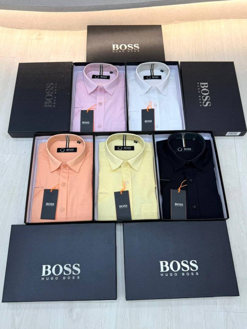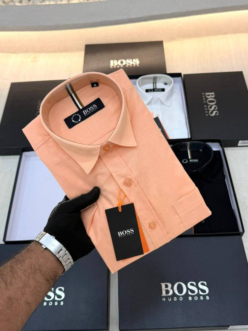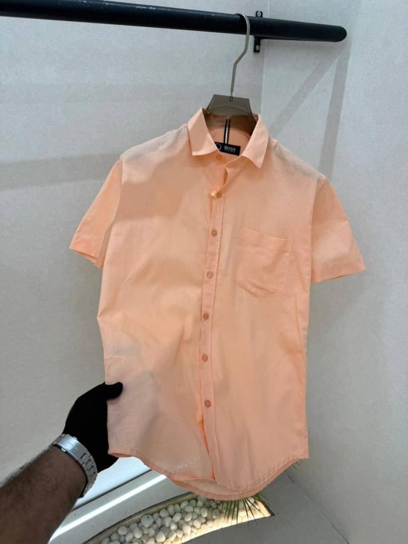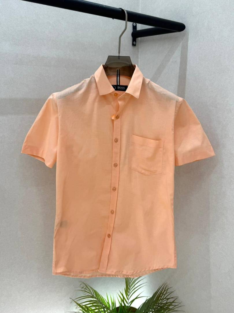 Hugo_Boss Orange Premium Half Sleeves Shirt With Brand Box Packing F3579-OR