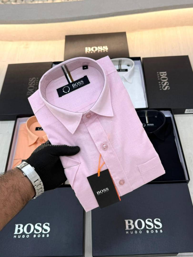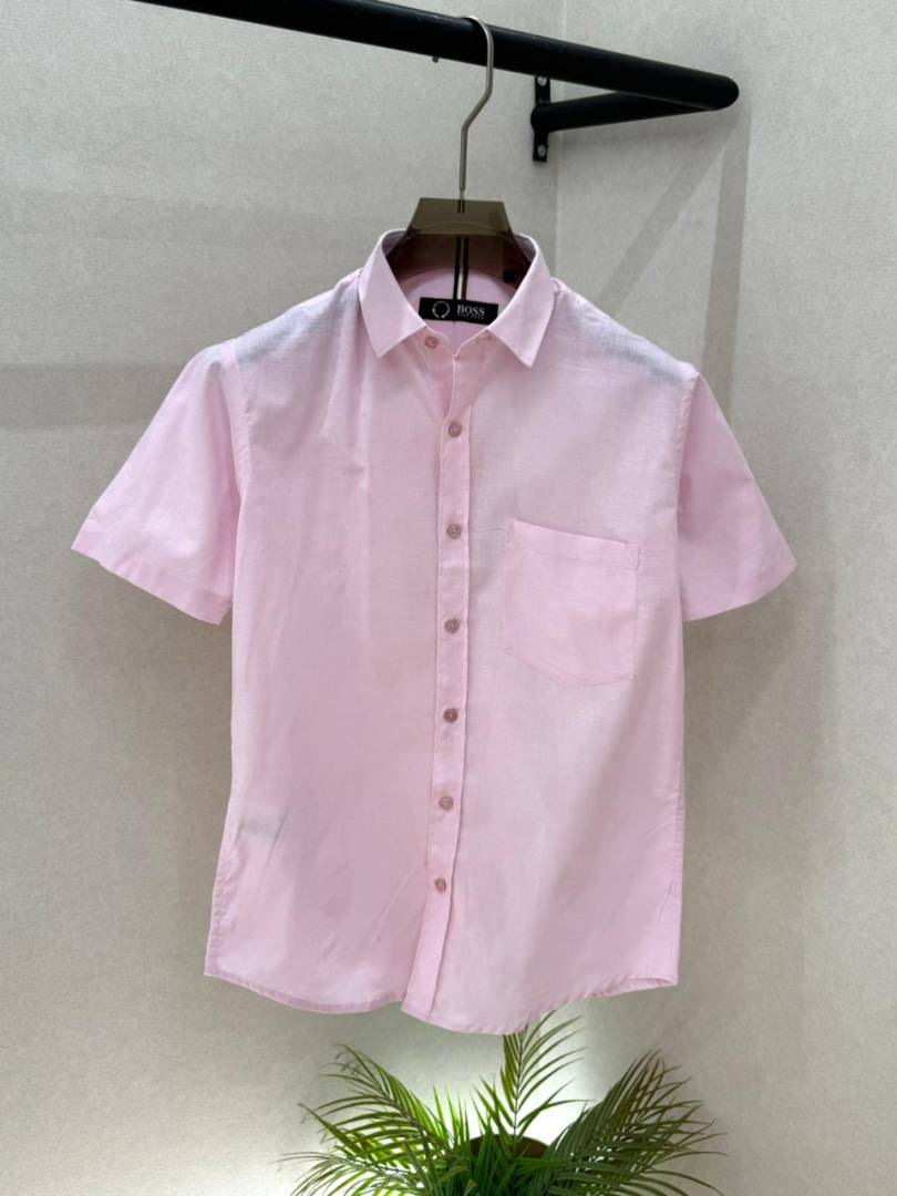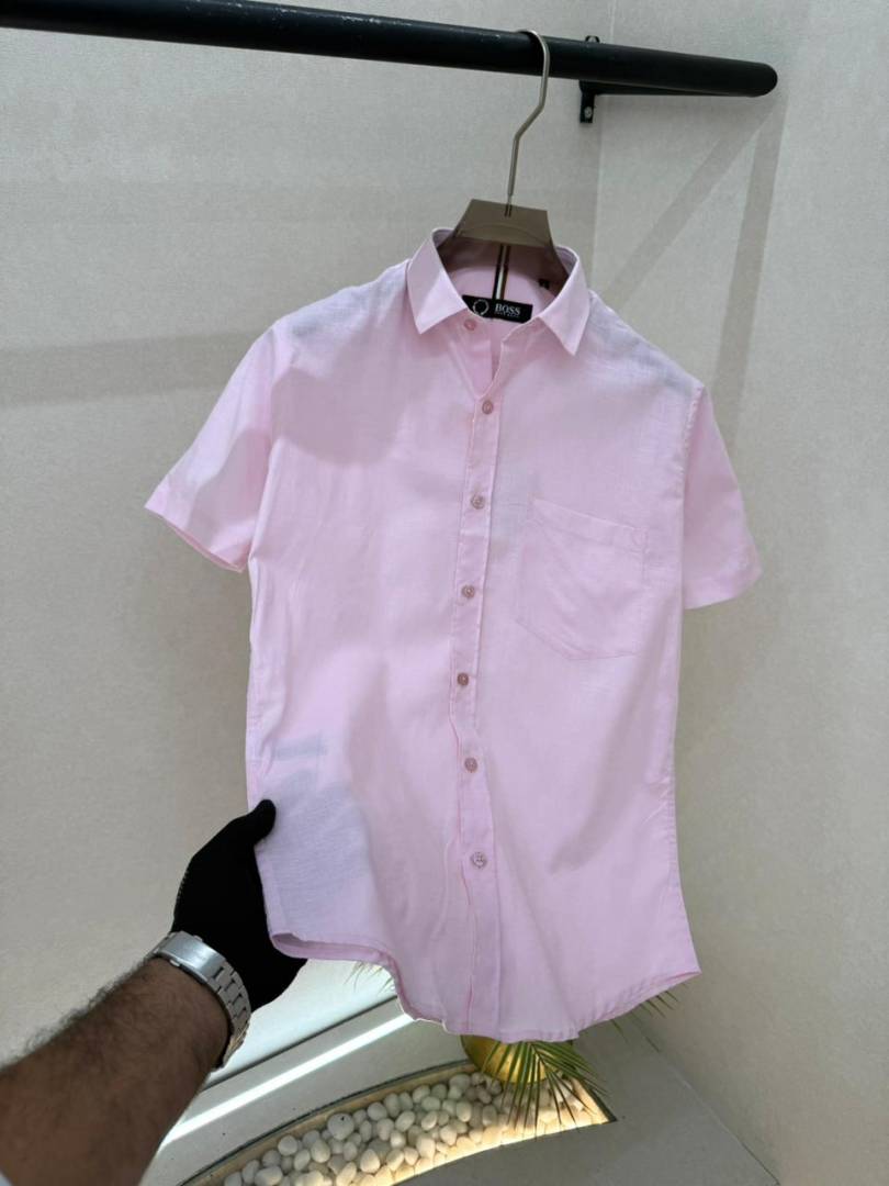 Hugo_Boss Pink Premium Half Sleeves Shirt With Brand Box Packing F3579-PI