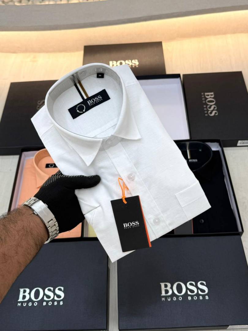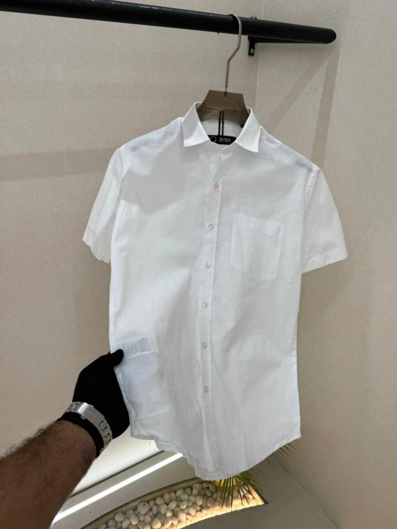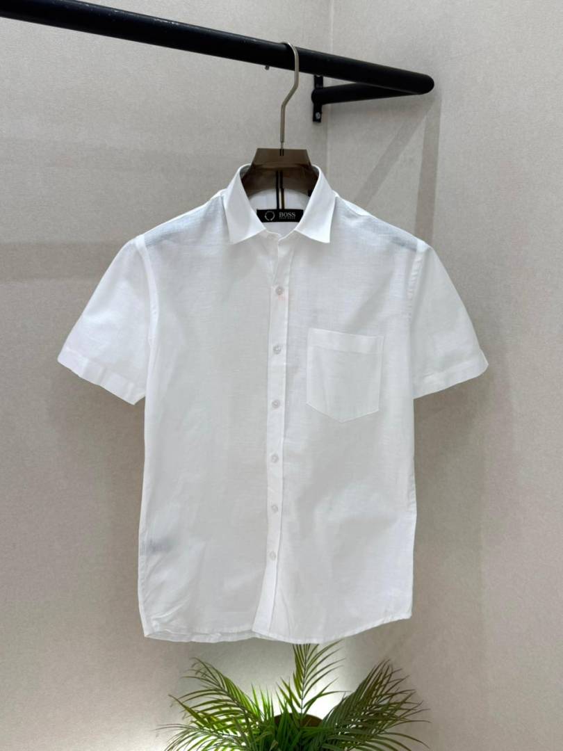 Hugo_Boss White Premium Half Sleeves Shirt With Brand Box Packing F3579-WH