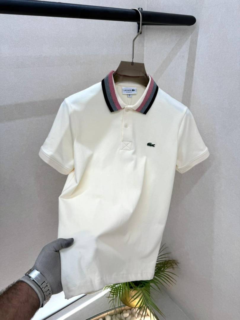 Lacost e Cream Polo Premium Collar Neck T-shirt F3598-C1