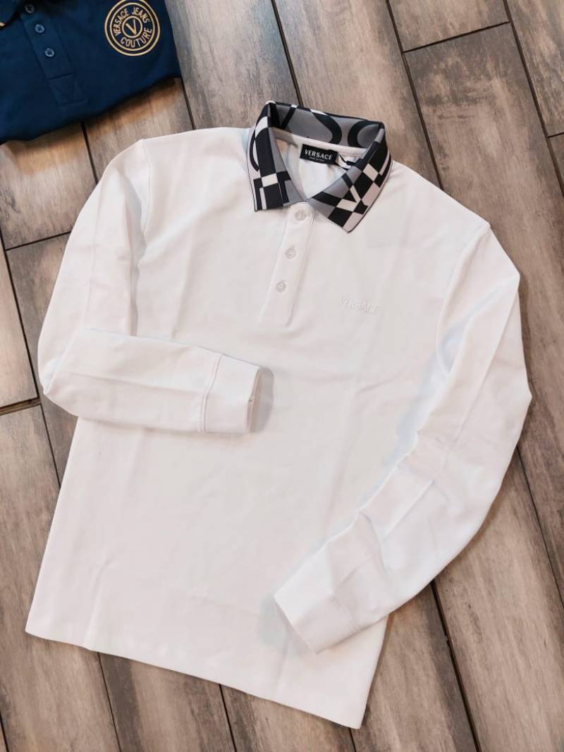 Versace White Polo Neck Full Sleeves Premium Collar T-shirt F3095-W3